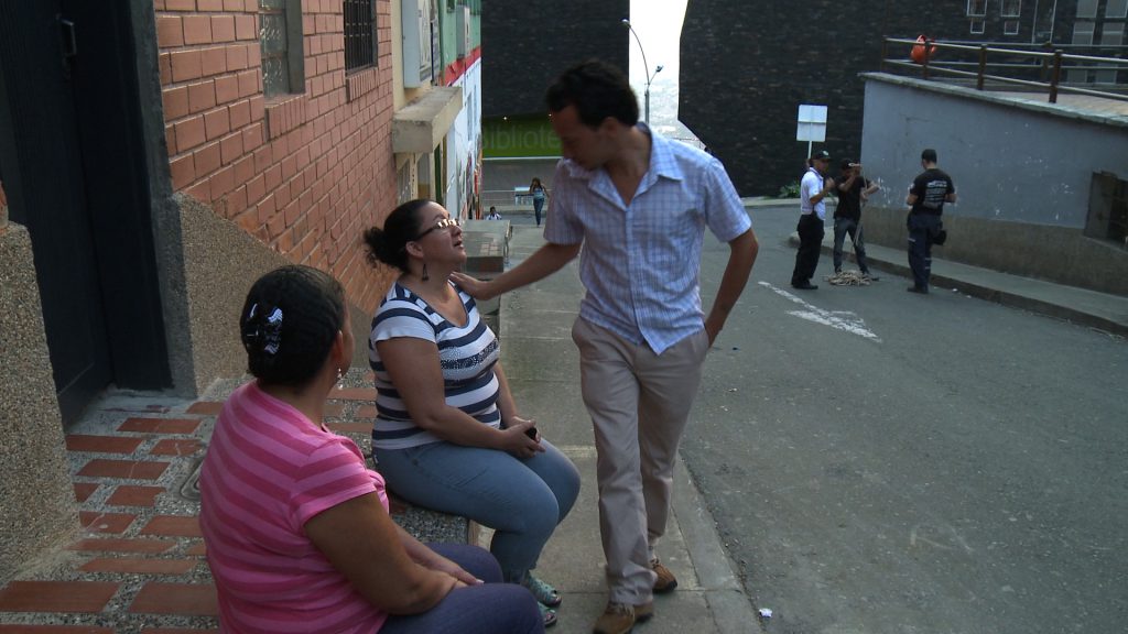Invited by adolescents I had filmed in a Medellin slum 16 years ago, I return to the city that was known back then as “the most dangerous city in the world”; I discover that it has become the “most innovative city on the planet”. An emblem of this change lies in this very neighbourhood: the Biblioteca España, a symbol of the state of things in this microcosm of Colombia. In 1997 I filmed three young people who are today fully involved in their neighbourhood’s life. As the owner of a photography business specialising in weddings and communions, Wilmar is in charge of the residents’ image. Manual is President of the “Community Action Committee”, in charge of finding solutions to the neighbourhood’s problems. Maria Eugenia, who was teaching her mother to read in my film, is now a Spanish teacher at the school. The documentary will be haunted by the presence of a phantom poet, killed two years after my first film. A person forgotten by no one but whose ashes are best left untouched. A metaphor for horror, amnesia and impurity. We are going to evaluate what is at stake for a neighbourhood that the city decided to incorporate. In 1997, I asked them: How do you see yourself in 10 years? School did not change the world, but it changed those who could change the world.