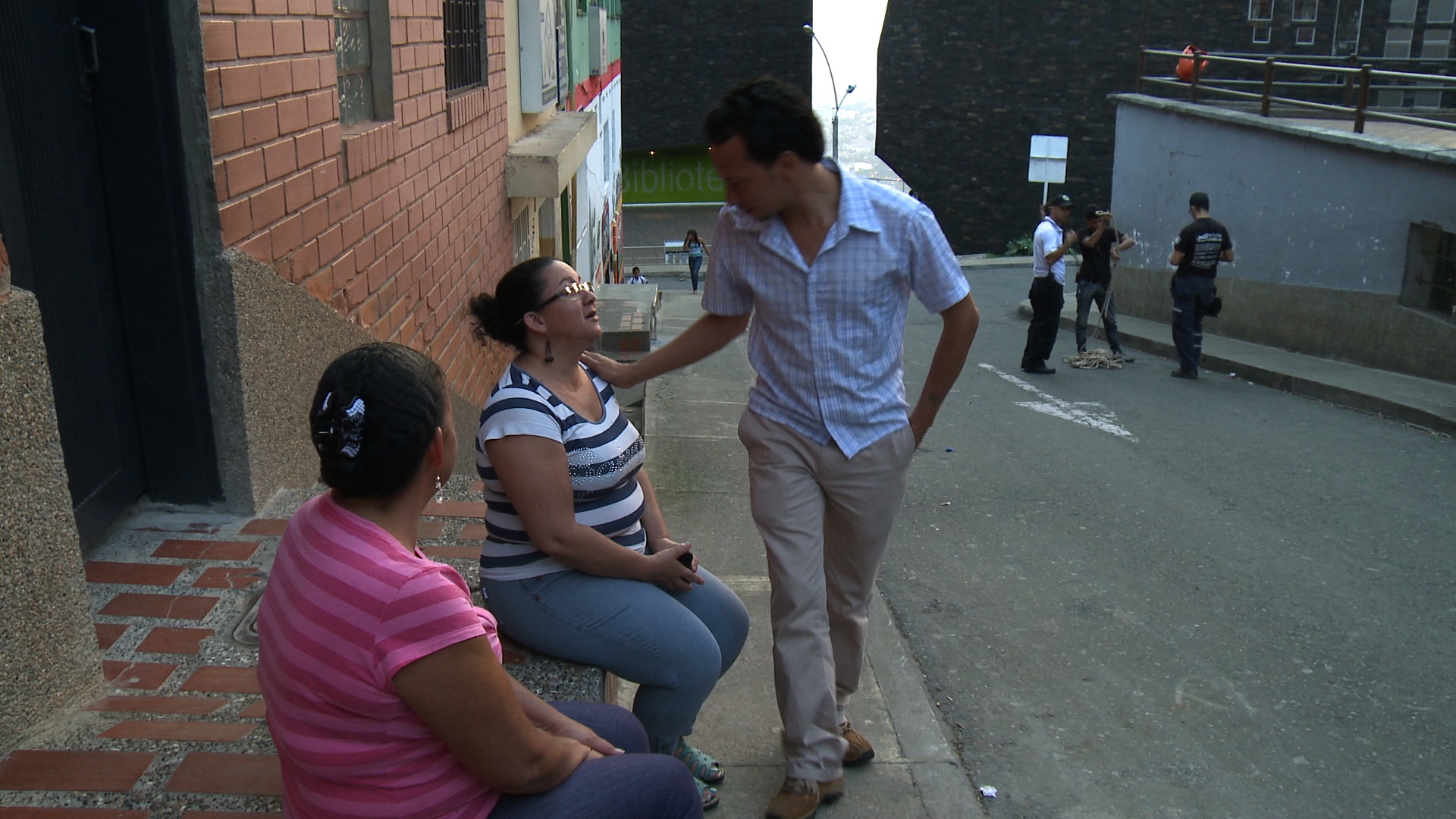 The story focuses on three main characters whom I met when making my first film and who represent the future of this neighbourhood. They each have a down-to-earth emblematic relationship with the neighbourhood and the new library, but also with Juan Carlos, one of their high school classmates. They all grew up here until sometime in their 30s. Employed, they have “successfully” made their way in the professional world. Having grown up surrounded by violence and fear, they now want to turn the page on a painful past. Considering that they have “made it”, they will do anything to ensure that the new image crafted by the city benefits its residents.